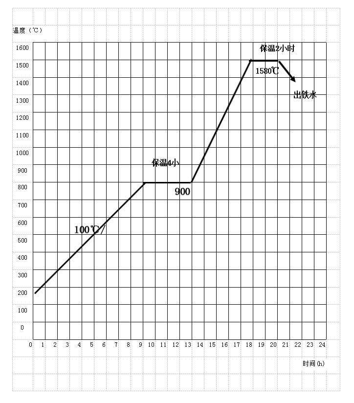 f加料時須特別注意:冷濕爐料和鍍鋅爐料要加在其它爐料上面,讓其慢慢進入鋼液中,避免鋼液飛濺。金屬爐料中嚴禁混有彈殼,密封管頭和其它易爆物品。 四、烘爐曲線